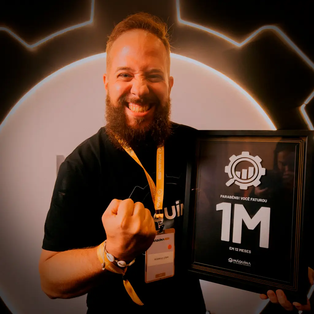 Recebi dele pessoalmente a placa de 1 Milhão de Reais em Faturamento no Google ADS em 12 Meses, no evento do Máquina Ao Vivo em São Paulo.